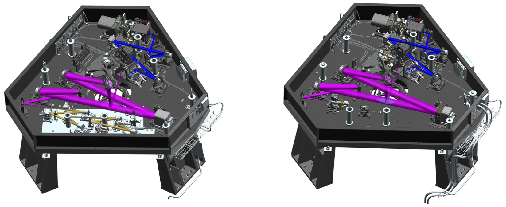 - l’unité de calibration de la SCAO, avec une configuration pour la phase d’intégration et de tests permettant de valider les performances de la SCAO et une configuration déployée, au final, sur l’instrument permettant de réaliser les étalonnages indispensables à la SCAO ;