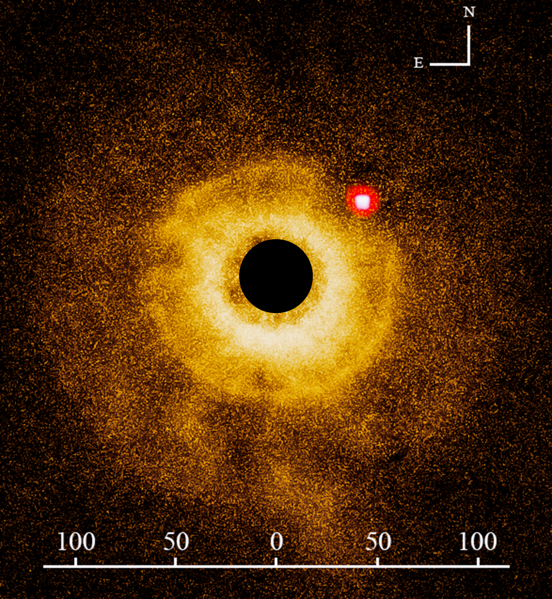 Il existe plusieurs techniques de détection d’exoplanètes, dont l’une consiste à imager directement une planète en orbite autour de son étoile hôte. On pourrait penser que cette méthode est la plus simple, car elle semble la plus intuitive. Pourtant, il n’en est rien ! En réalité, l’imagerie directe d’exoplanètes est complexe pour deux raisons principales : elle nécessite une résolution angulaire suffisante pour distinguer la planète de son étoile, ainsi qu’une sensibilité adéquate pour obtenir un contraste permettant de faire ressortir la pâle lueur de la planète par rapport à une étoile brillant des millions de fois plus intensément. C’est pour ces raisons que la plupart des détections d’exoplanètes par imagerie directe concerne des planètes loin de leur étoile, d’au moins dix fois la distance Terre-Soleil (10 AU), et très massives (environ celle de Jupiter) pour que leur émission infrarouge soit plus intense.